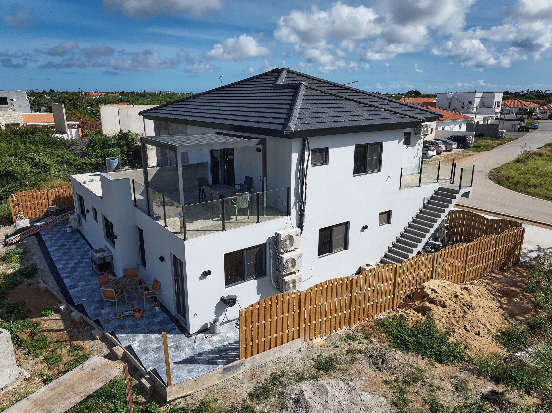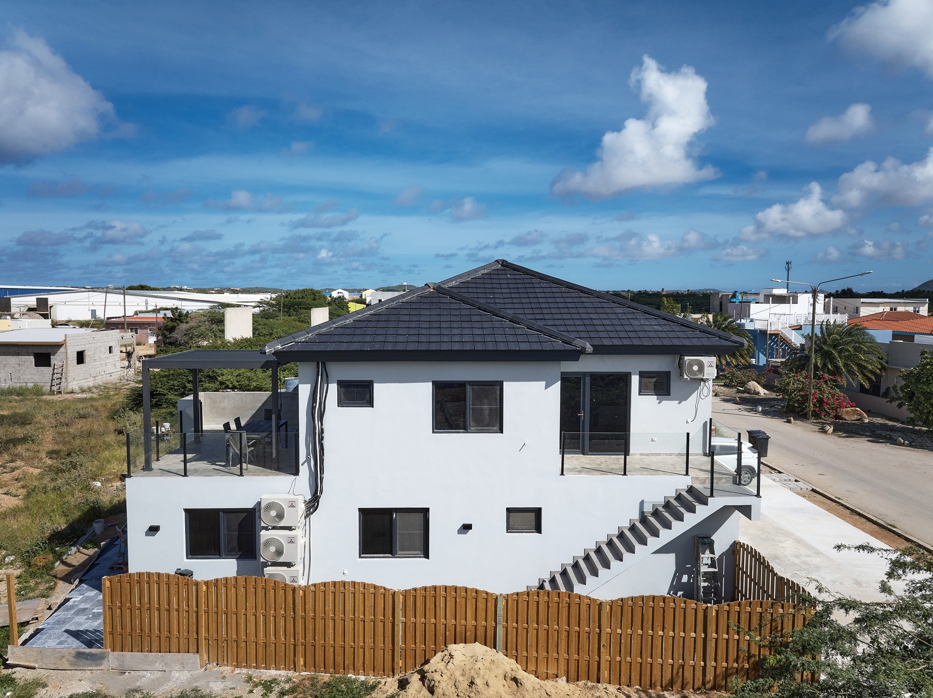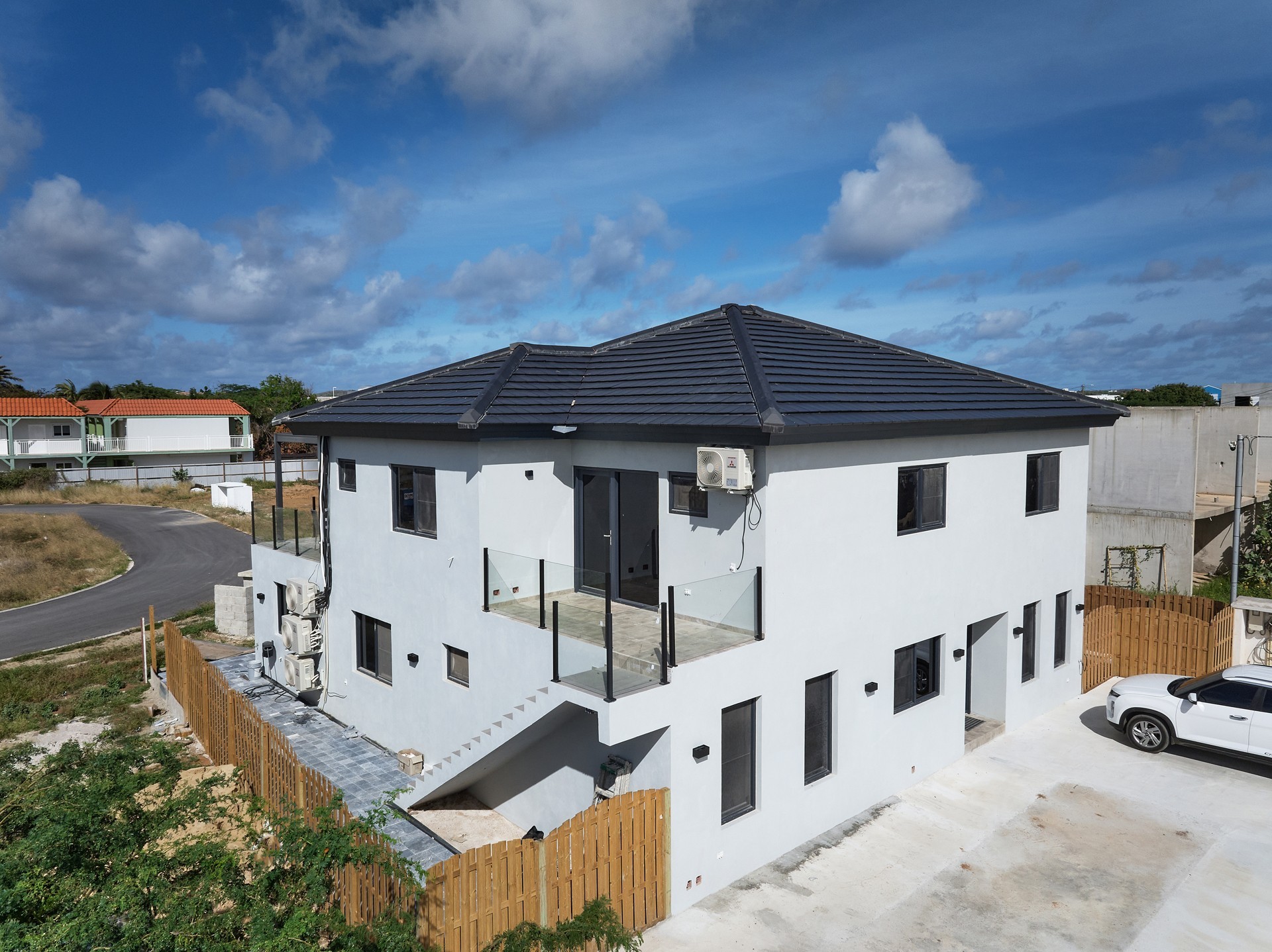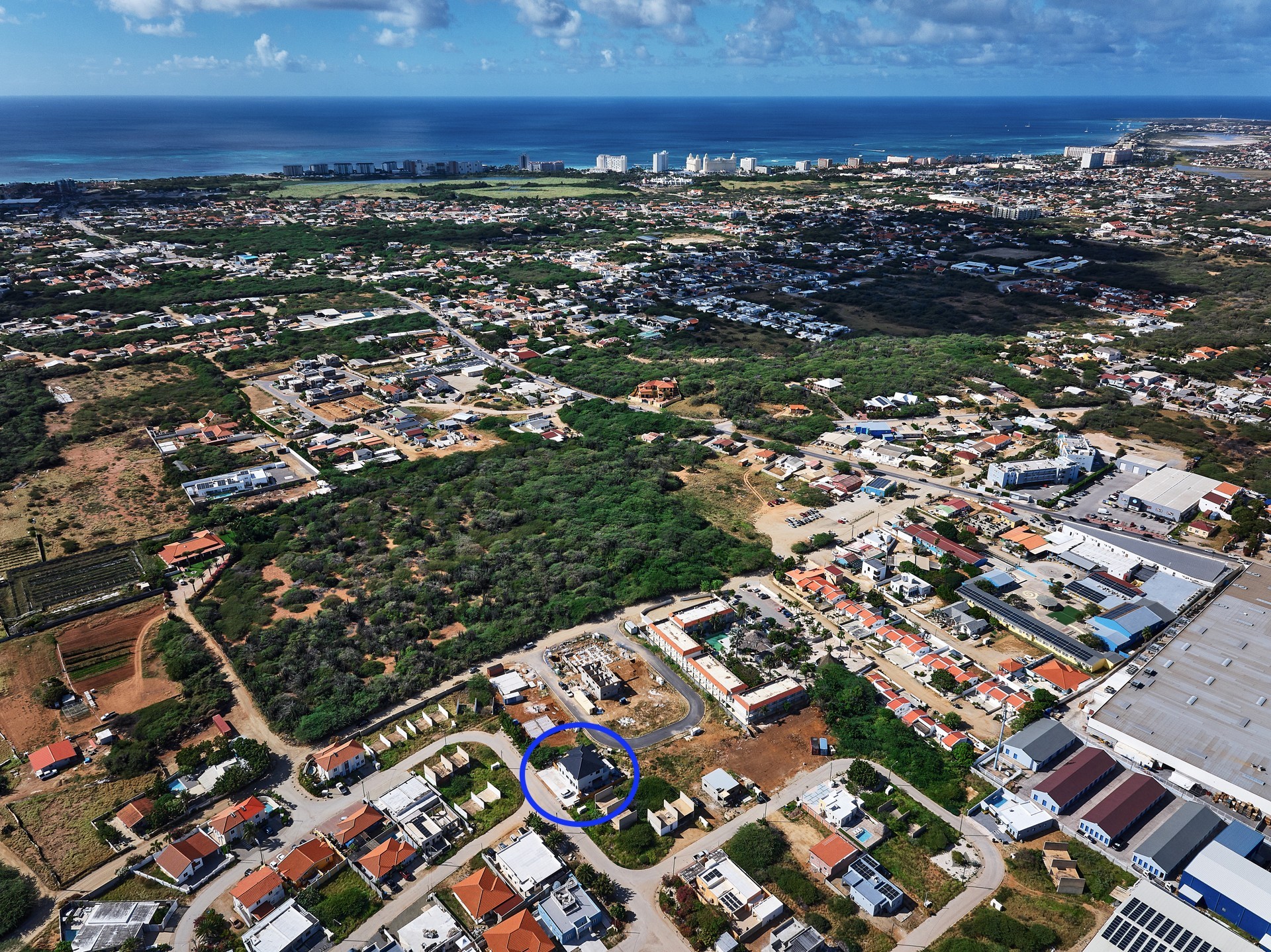 Supermarkets, school and daily conveniences are nearby, while the property enjoys direct access routes to Aruba’s high-rise area.