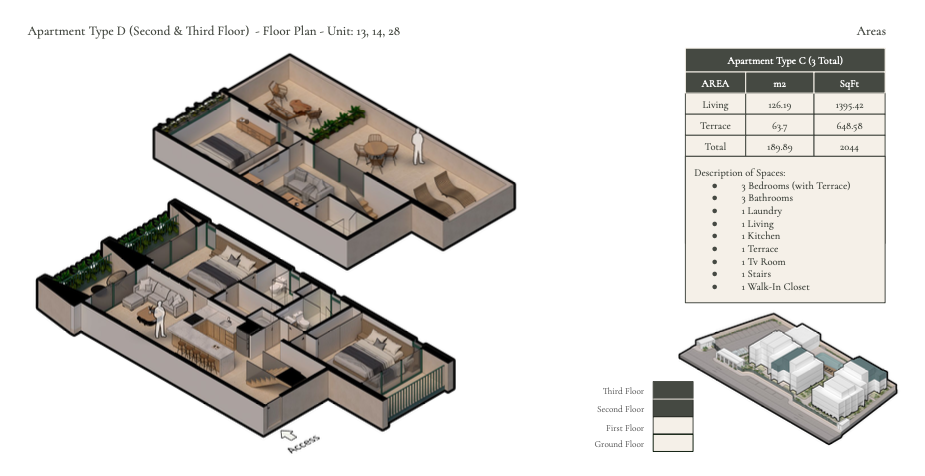 3 Bedroom Duplex Residence, located on the second and third floor